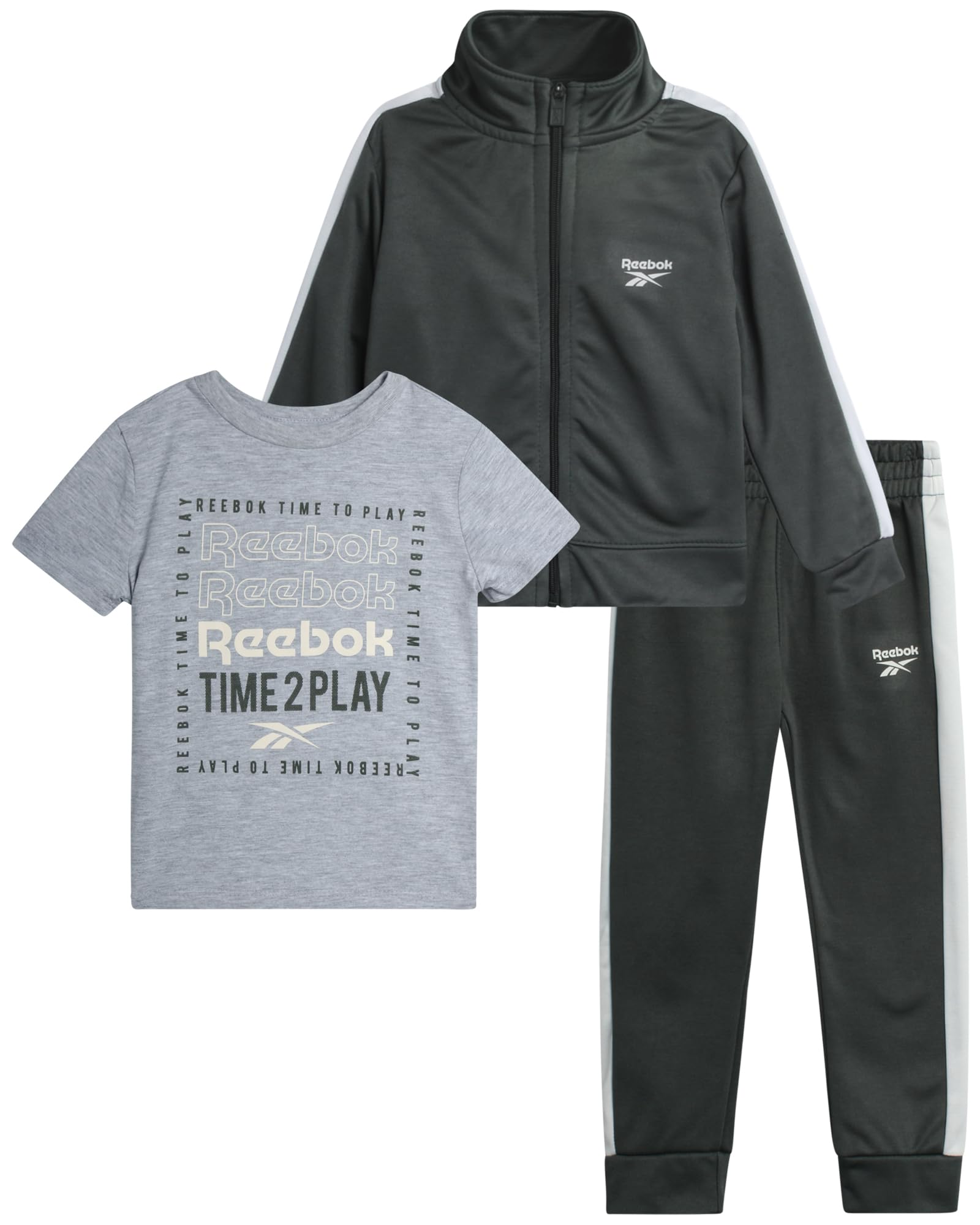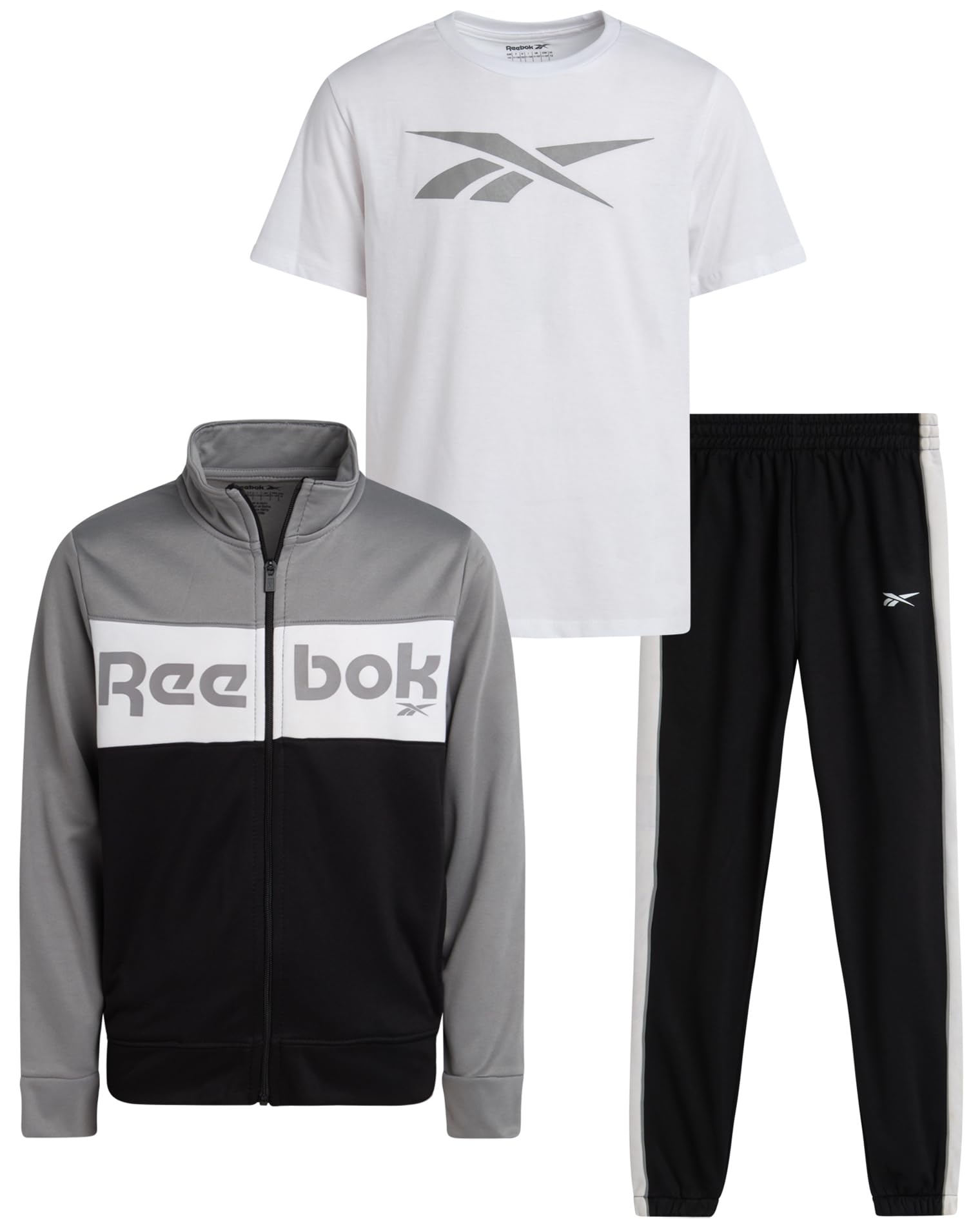 Reebok Boys Jogger Set - 3 Piece Athletic Tracksuit with Tricot Zip Jacket, T-Shirt, and Jogger Sweatpants for Boys|Clothing
