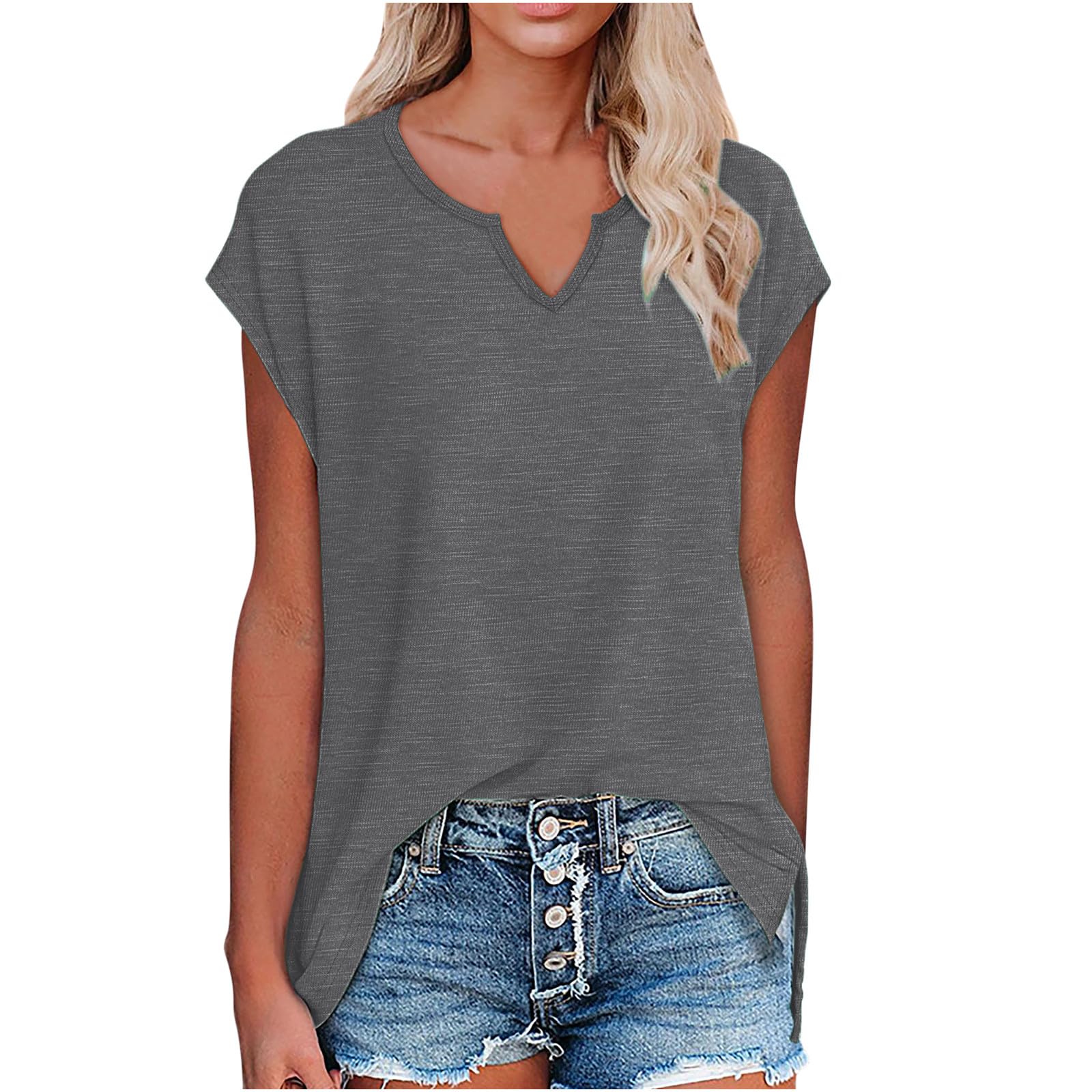 Generic Summer Tops for Women 2024 Fashion V Neck Cap Sleeve Solid Baggy Tunic Blouses Casual Loose Fit Basic Cute Tee Shirts|Clothing