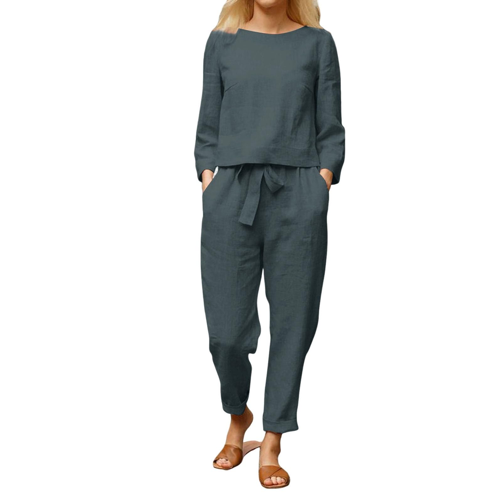 Two Piece Sets for Women Summer Long Sleeve Shirt High Waisted Wide Leg Pants Matching Linen Sets for Women 2 Piece|Clothing
