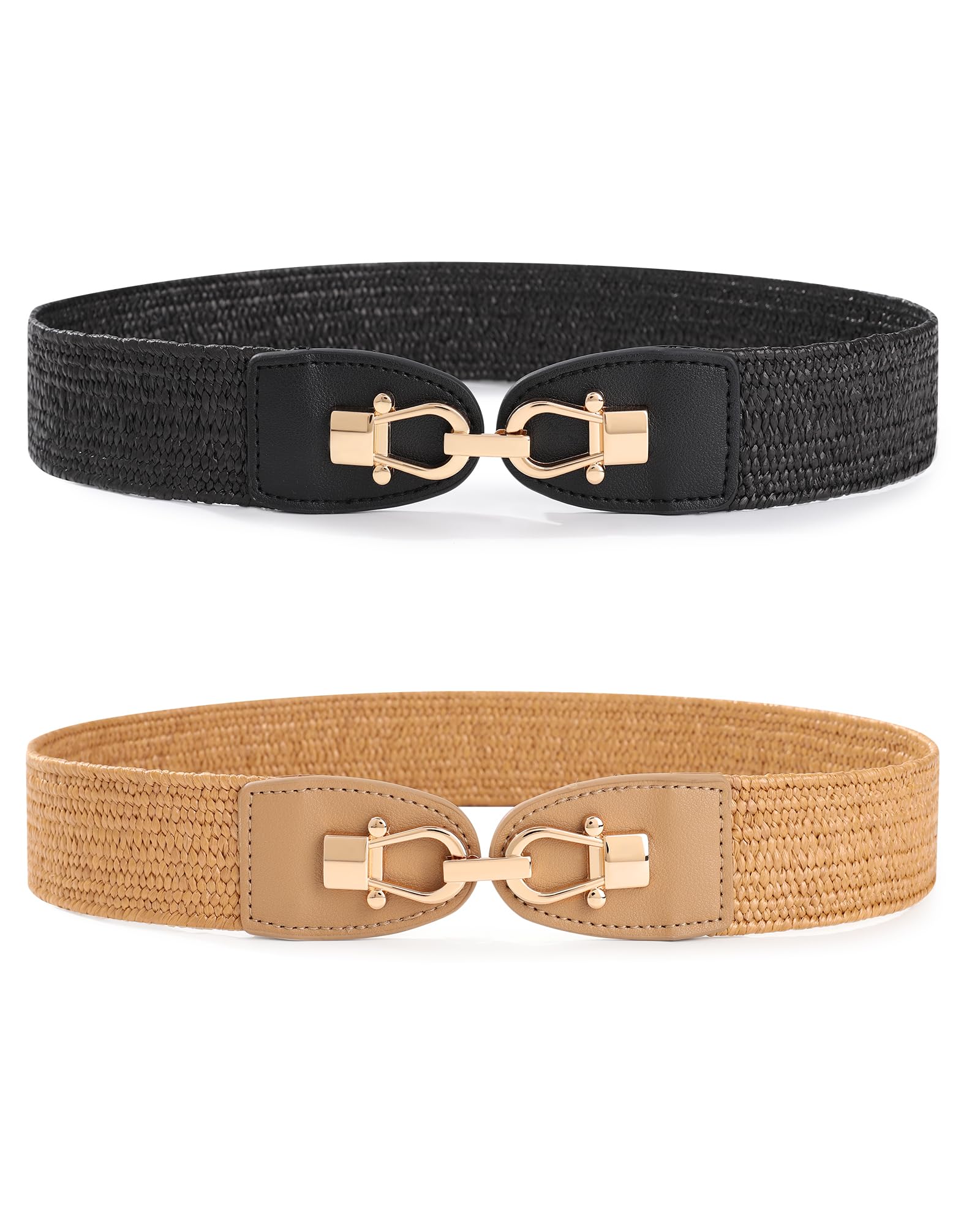 Kajeer Women Belt Elastic Waist, 2 Pcs Women Straw Belt Metal buckle Breathable Boho Braided Belt for Dress Casual|Clothing