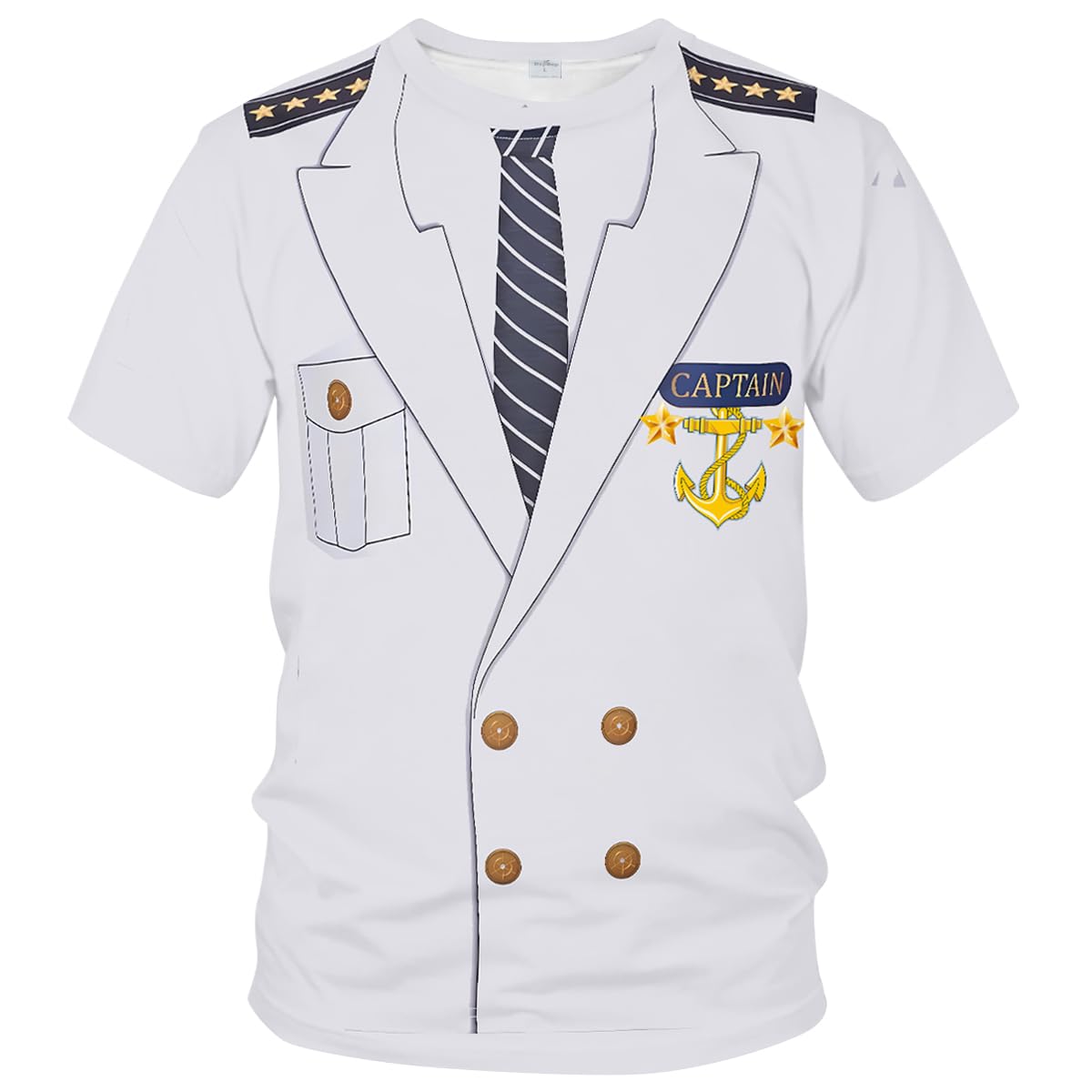 LAOLIUSN Funny Captain Costume T-Shirt Novelty Short Sleeve Crewneck Shirt|Clothing