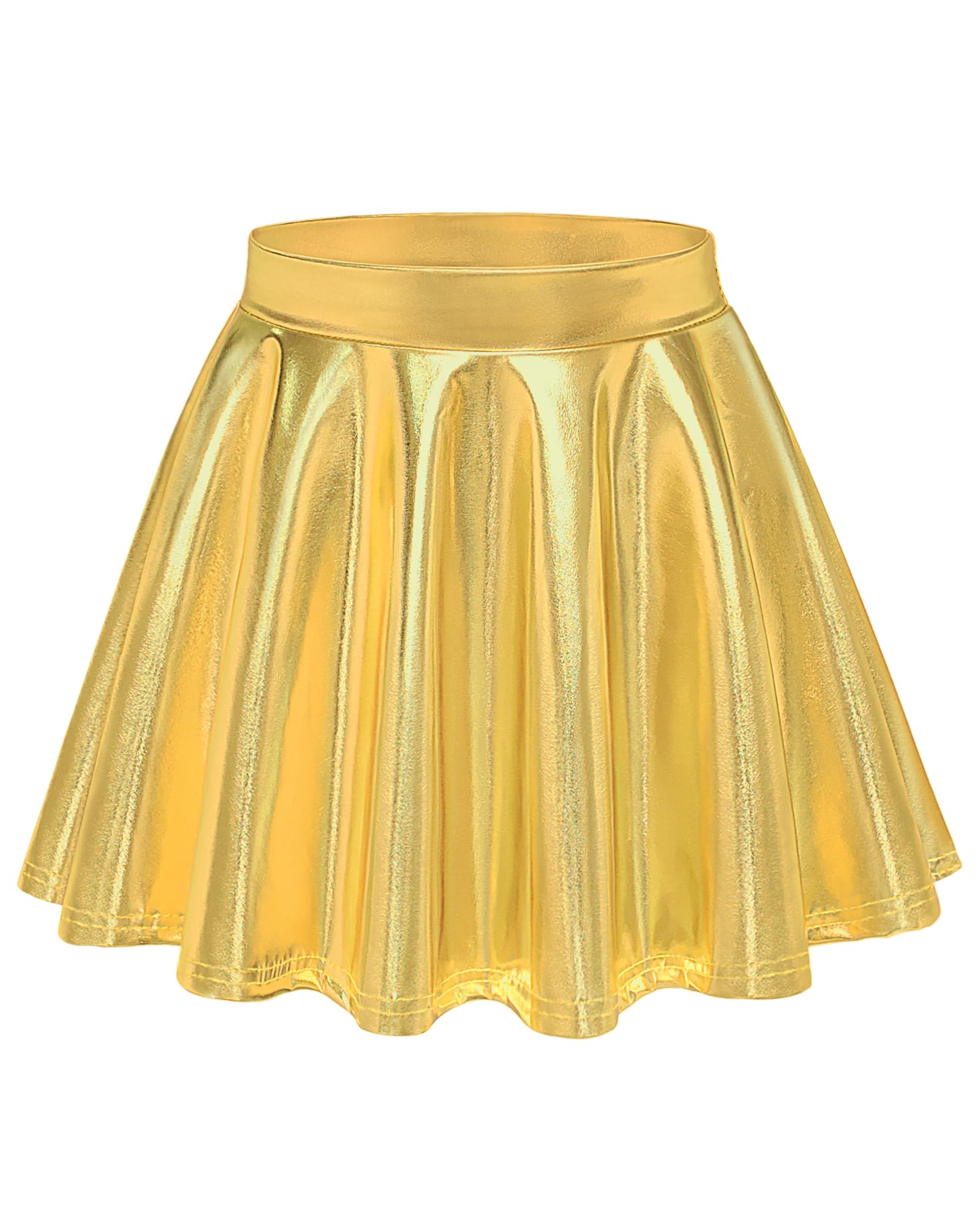 Auranso Girls Metallic Skater Skirt Sparkly Shiny Flared Pleated A-Line Mini Skort|Clothing