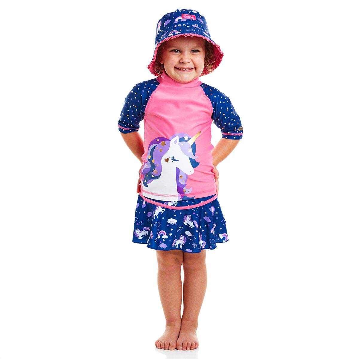 UV SKINZ UPF 50+ Girls 3-Piece Swim Set (2T, Bubblegum Unicorn)|Clothing