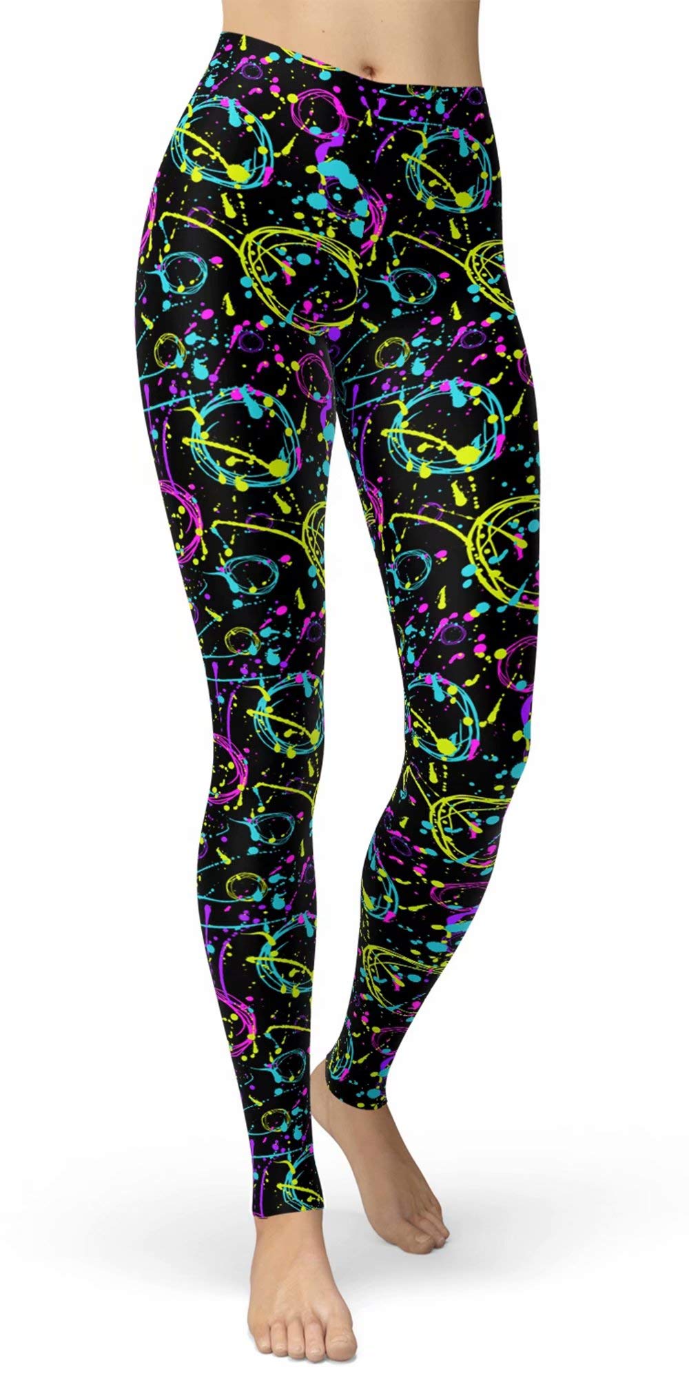 sissycos Women's 80s Leggings Neon Artistic Splash Printed Buttery Soft Stretchy Pants|Clothing