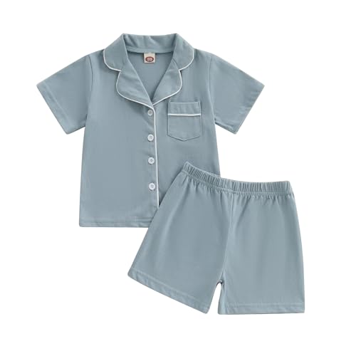 Balaflyie Toddler Baby Pajama Set Boy Girl Button Down Sleepwear Short Sleeve Shirt&Shorts Cotton Jammies Kids Lounge Sets|Clothing
