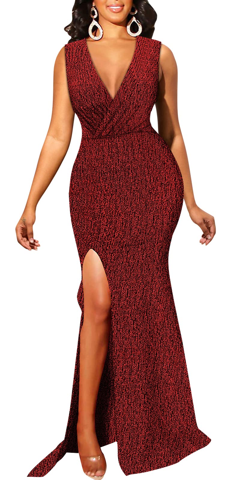 BestGirl Formal Long Sleeve Dress for Women Sequin Bodycon Ruched Sparkly Dresses|Clothing