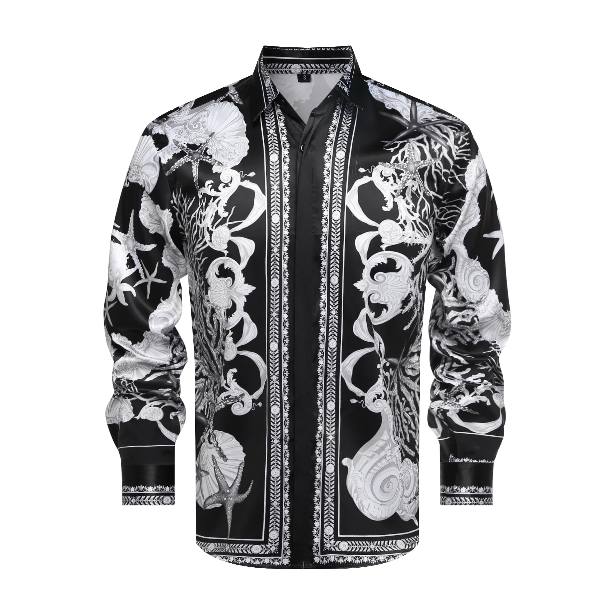 GSBOGOSSE Men Gold Fashion Luxury Printed Satin Long Sleeve Button-Down Shirts Flashy Retro Gorgeous Design Party Gift Shirt|Clothing