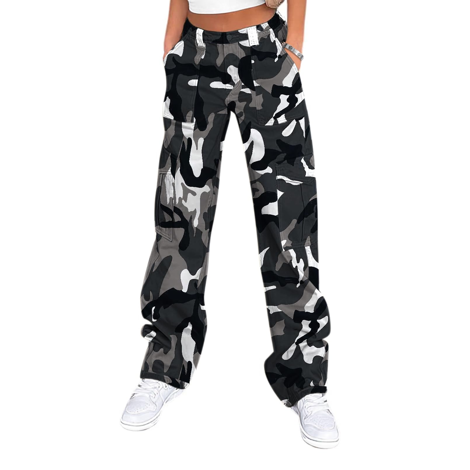 Lepunuo Cargo Pants for Women High Waisted Casual Pants Baggy Stretchy Wide Leg Y2K Streetwear with 6 Pockets|Clothing