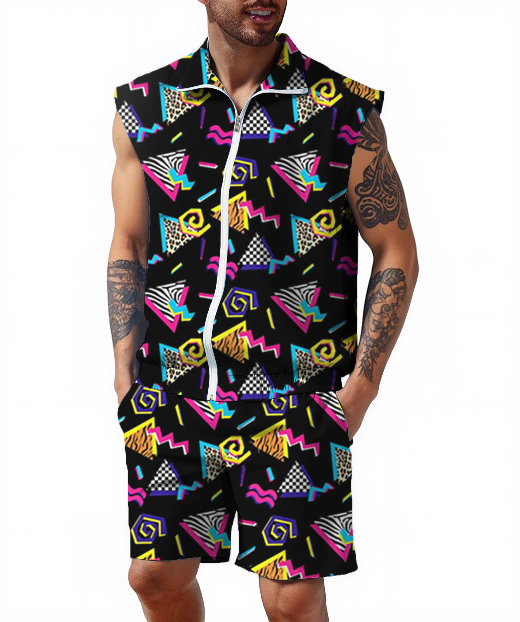 UOUA Men 80s Outfit 90s Costume 2 Piece Shorts Set Themed Party Clothes|Clothing