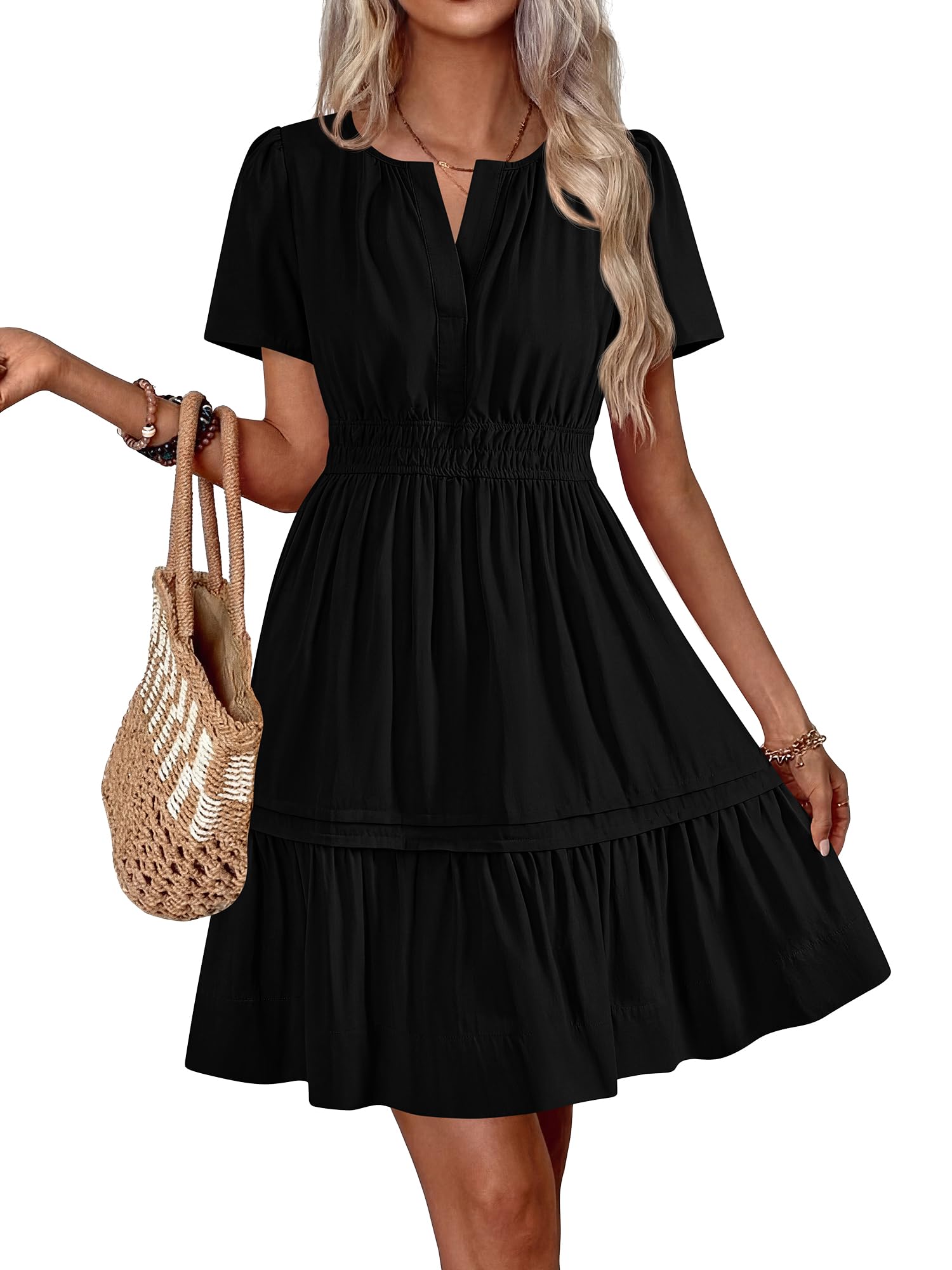 BTFBM Summer Dresses for Women 2026 Casual Boho Sundress Short Sleeve V Neck Ruffle A Line Beach Vacation Mini Dress|Clothing