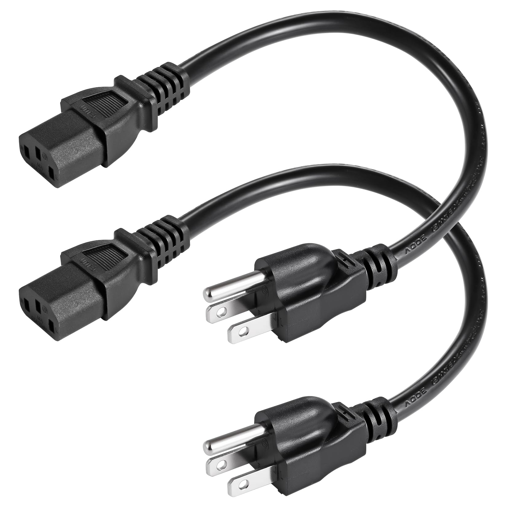[2-Pack] 1FT Premium Replacement AC Power Cord - VSEER 18AWG Universal 3 Prong Computer TV Power Cord for NEMA 5-15P to IEC320 C13 Cable, 0.3M / Black|Electronics