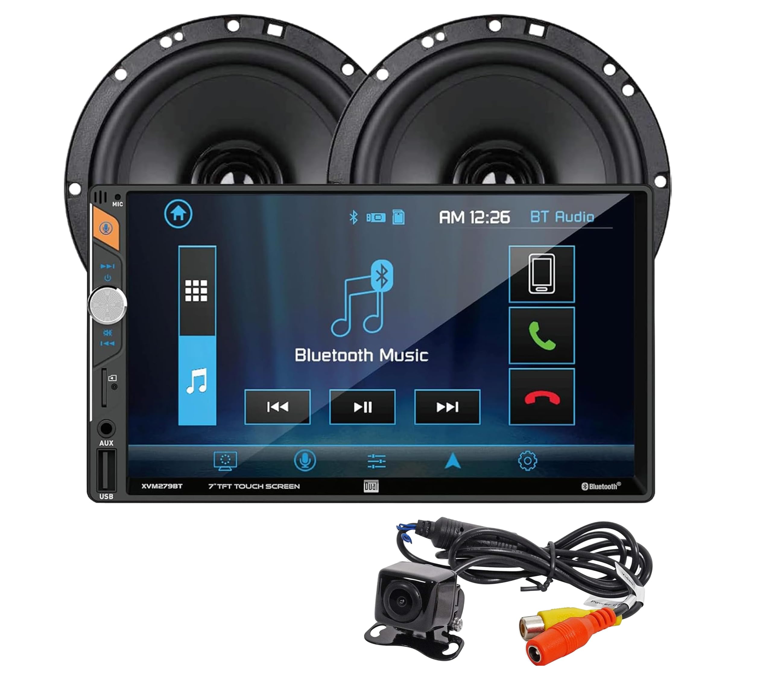 Dual Electronics XCP1101SP 7-inch LED Digital Media Touchscreen Double DIN Car Stereo with (2) 6.5" Speakers & Backup Camera Bundle | Push to Talk|Electronics