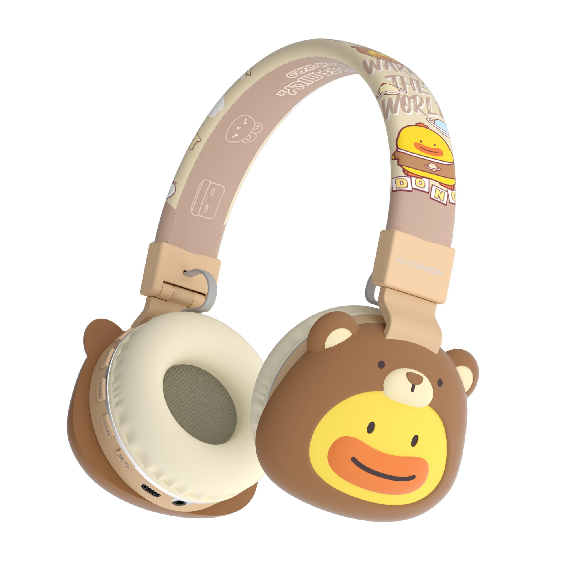 YLFASHION Kids Bluetooth Headphones, 85dB Volume Limit, Ultra-Soft Over-Ear, Built-in Mic, Foldable,Cartoon Animal Design, Suitable for School &|Electronics