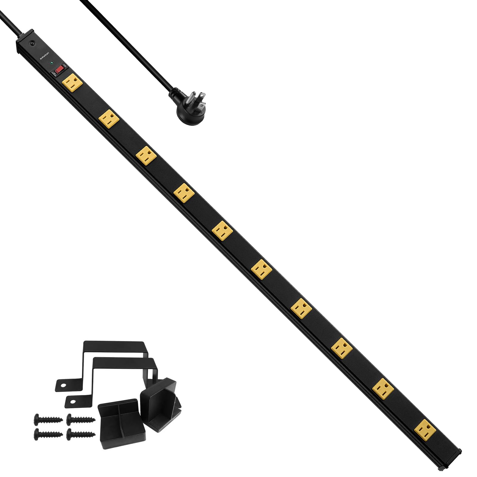 SURAIELEC 10 Outlet Long Power Strip Surge Protector, Industrial Heavy Duty Metal Shop Power Strip with Flat Plug, 1000 Joules, 15 AMP Breaker, 6FT|Electronics