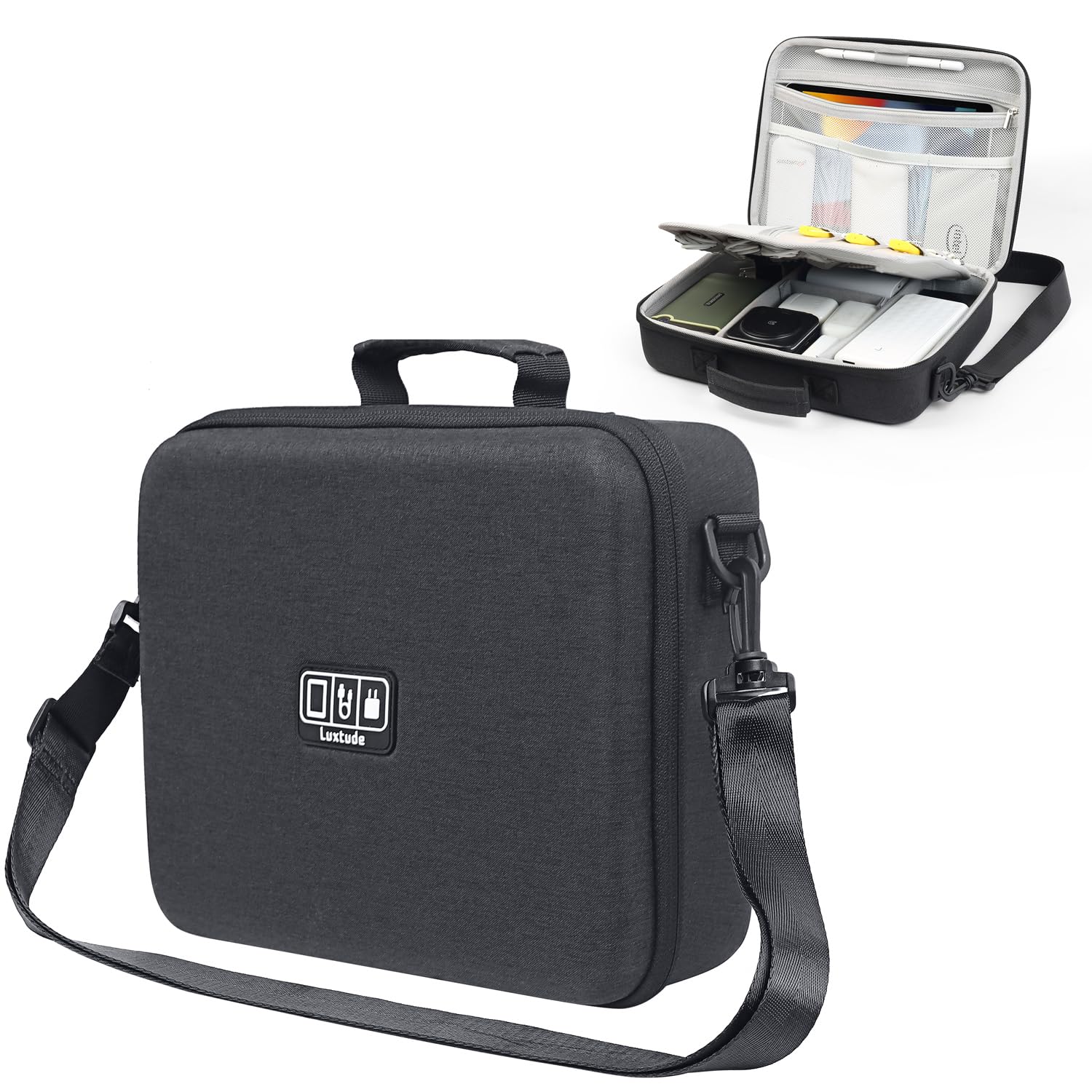Luxtude Electronic Organizer Travel Case Large, Hard Case for Electronics, EVA Tech Organizers, Travel Cable Bag with Shoulder Strap, Charger|Electronics