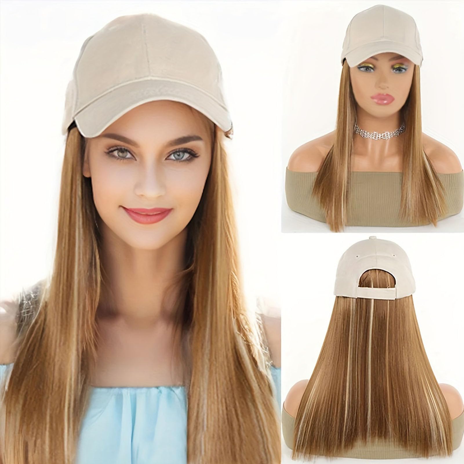 ASAYUMI Baseball Cap Wig Straight Hair Extensions With Hat Heat Resistant Synthetic Fiber Hairpieces Adjustable Wig Brown Mixed Blonde for Women Girls|Health & Beauty