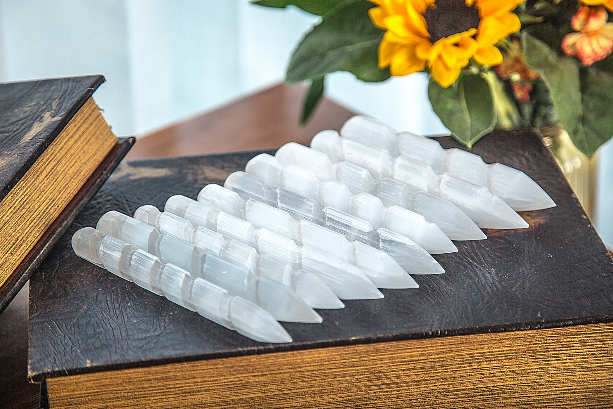 JIC Gem Spiral Faceted Selenite Crystal Massage Wand Powerful Healing Energy Reiki Set of 10|Health & Beauty
