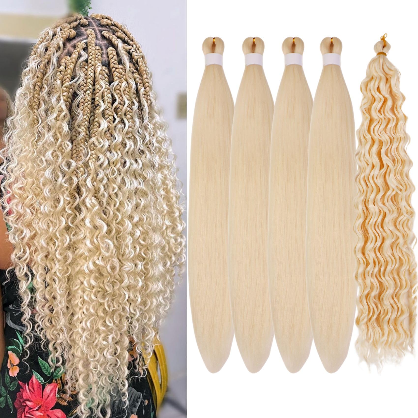 Blonde Braiding Hair Pre Stretched for Boho Braids Synthetic Prestretched EZ Braiding Hair for Knotless Box Braids (Total 5 Packs)|Health & Beauty