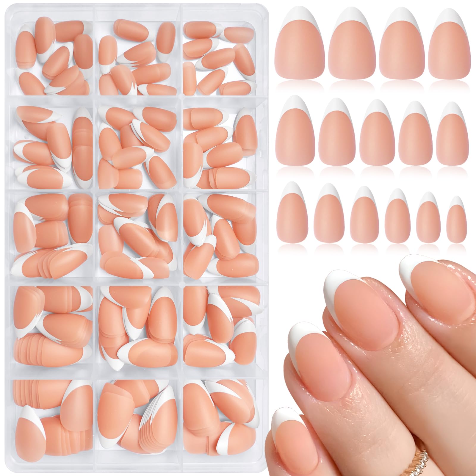 LuckForever 300pc Short Almond Nail Tips Nude Fake Nails French Tip Press On Nails Short Almond Acrylic Nails Press on Nail Glue Nail False Fingernail|Health & Beauty