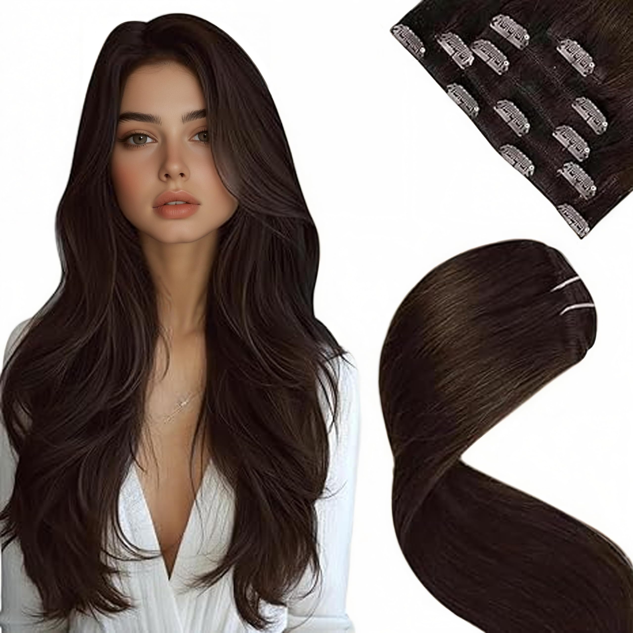 LaaVoo Brown Clip in Hair Extensions Real Human Hair 20inch Dark Brown Human Hair Clip in Extensions Dark Brown Real Human Hair Hair Clip ins Silky|Health & Beauty