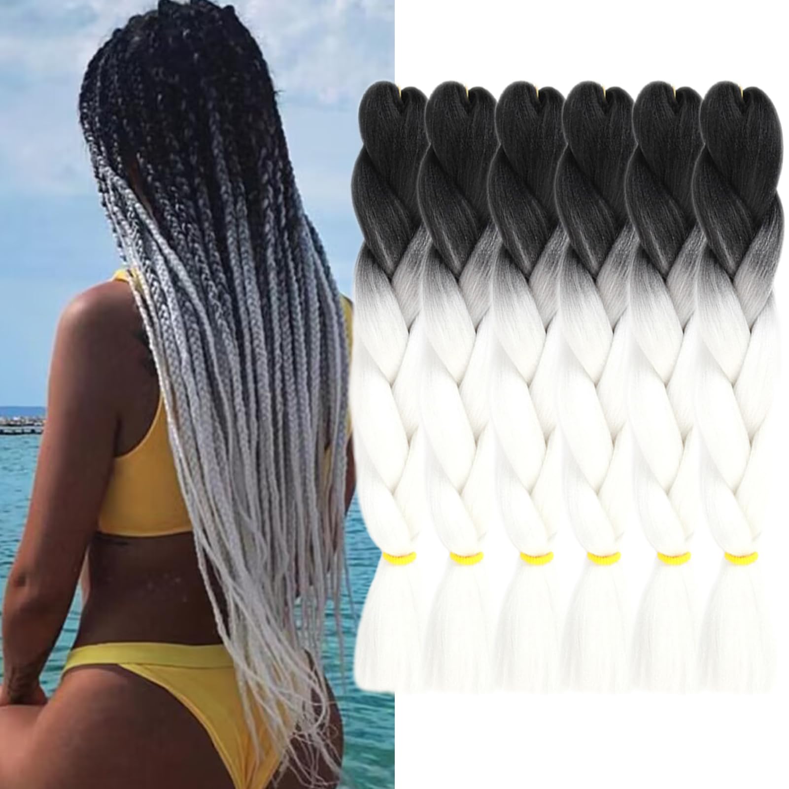 FYRLNA 6 Packs 24 Inch Jumbo Braiding Hair Soft High Temperature Resistance Synthetic Hair Extensions for Women 24 Inch Ombre Jumbo Braiding Hair(24|Health & Beauty
