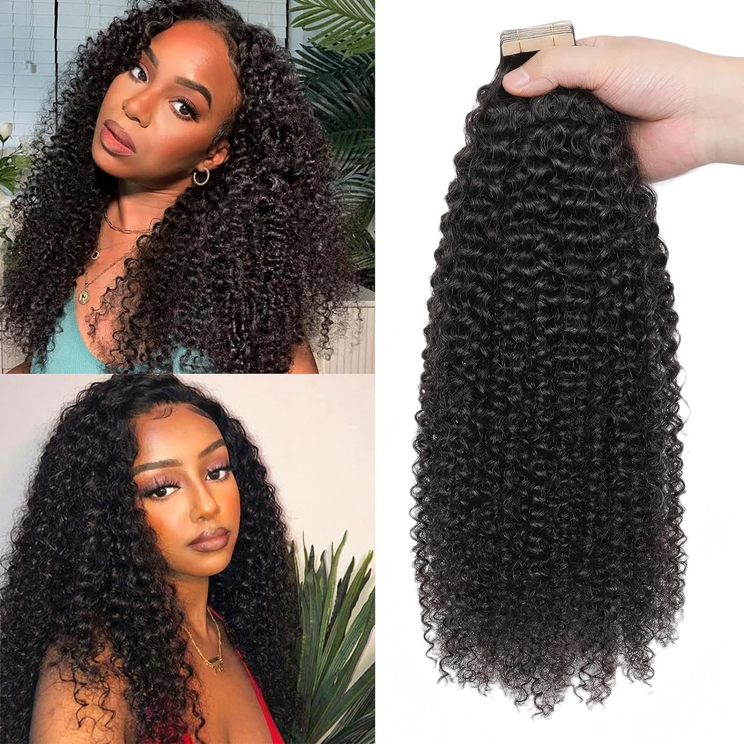 60pcs Tape in Hair Extensions Human Hair Black Girl Kinky Curly Tape ins 3c 4a Curly Hair tape in Extensions Invisible Seamless Real Human Hair Tape|Health & Beauty