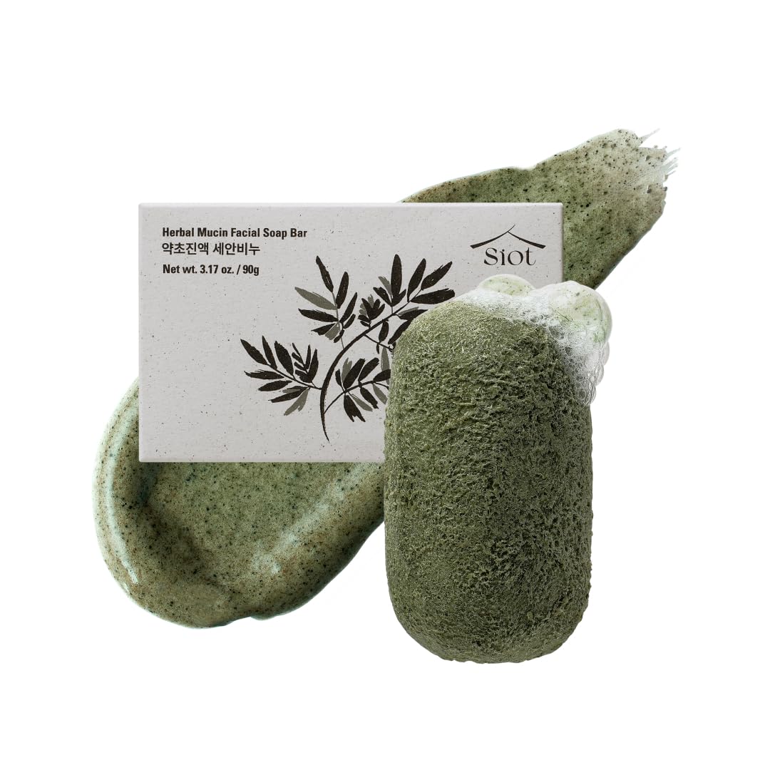 SIOT Herbal Mucin Facial Soap Bar | Hydrating & Soothing with Coconut, Jojoba, Olive Oil, Green Tea, and Mugwort – Handmade, Cleanser for Acne &|Health & Beauty