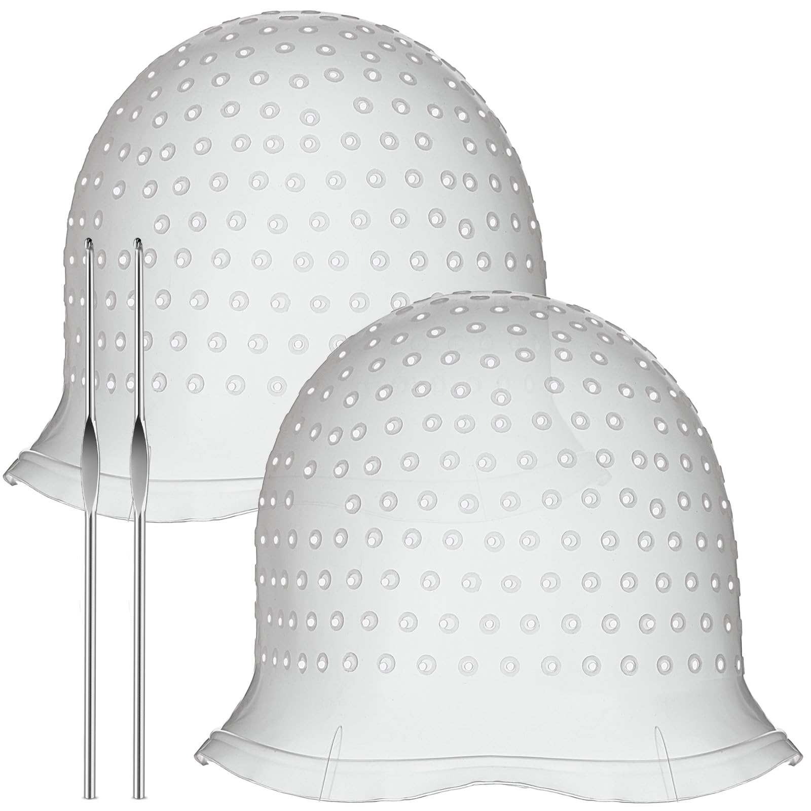 2 Pcs Hair Coloring Highlighting Cap Reusable Silicone Highlight Cap Pull Through Caps for Hair Coloring Frosting Cap with Hook Hair Dye Cap with|Health & Beauty