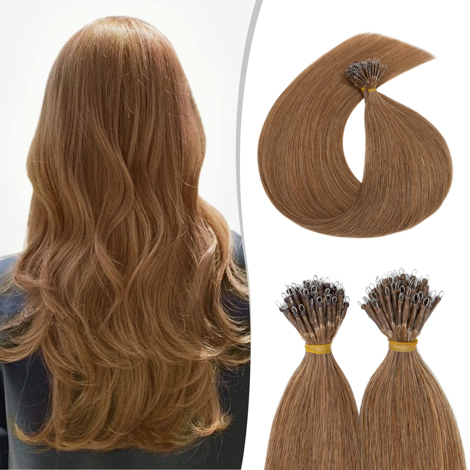 16inch Nano Beads Ring Hair Extensions Human Hair Light Auburn Pre Bonded I Tip Keratin Cold Fusion Stick Tipped Hairpiece Iron Loop Link Straight|Health & Beauty