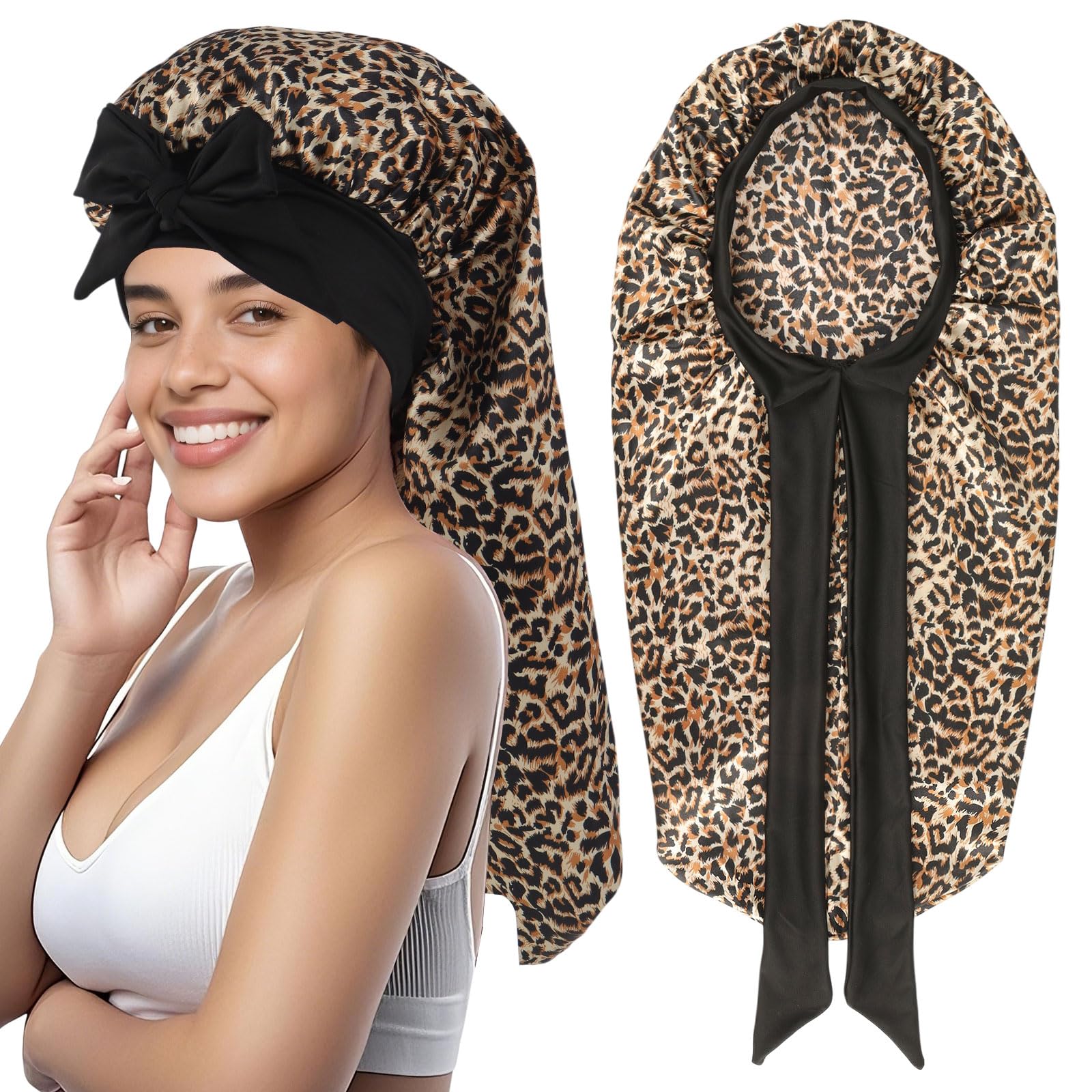 Long Satin Hair Bonnet, Adjustable Silk Bonnet for Women|Health & Beauty