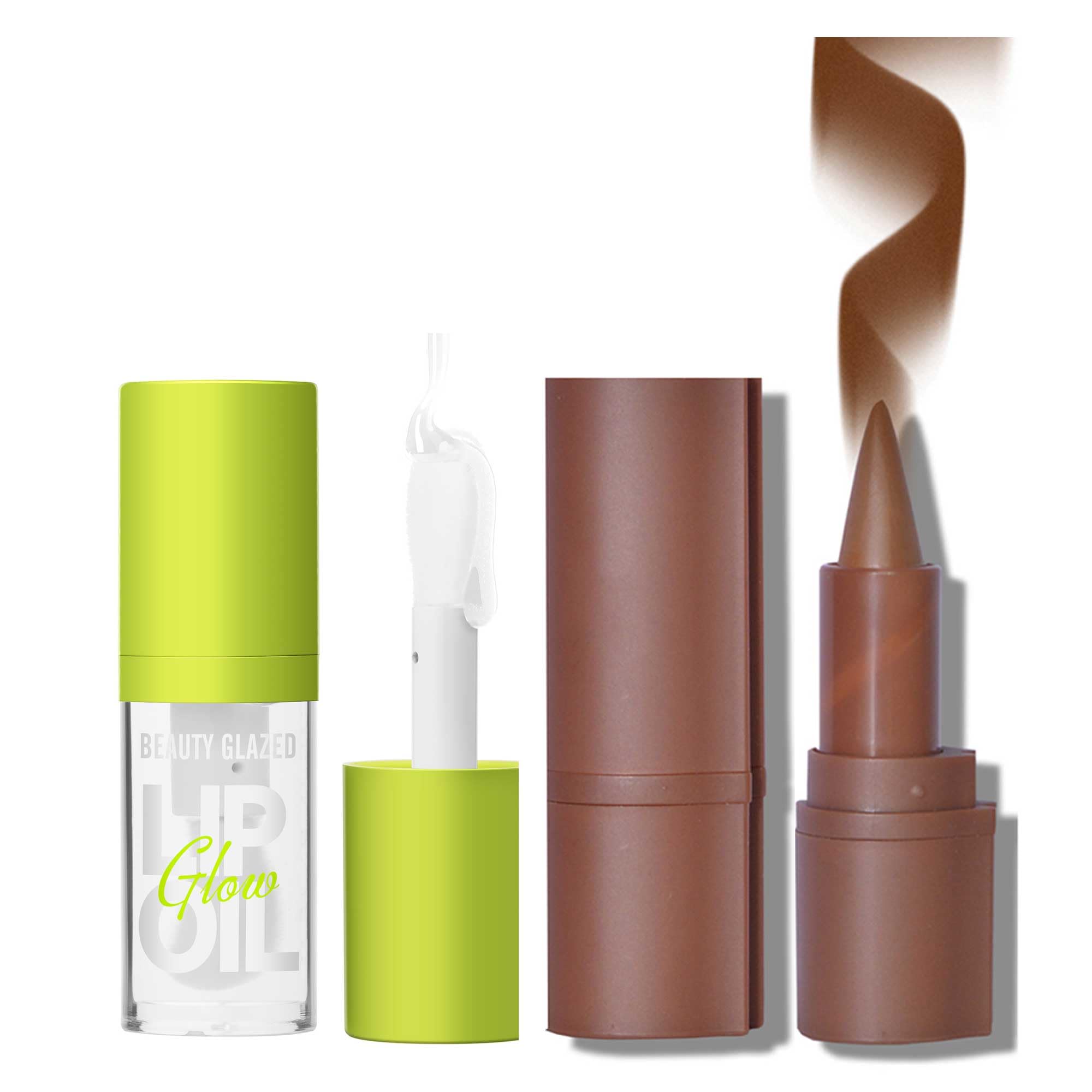 Beauty Glazed 2Pcs Lip Oil and Lip Liner Set, Gradient Brown Lip Liner and Lipstick Lip Combo Set, Smooth Glossy Finish Lip Glow Oil for Black Women (|Health & Beauty