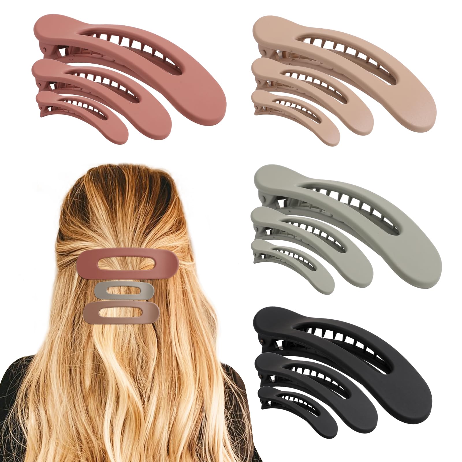 12PCS Flat Hair Clips, Flat Claw Clips for Thin Hair, Matte Lay Down Claw Clips for Women, 3 Sizes Alligator Hair Clips, Slide Hair Clips,Wine Red|Health & Beauty