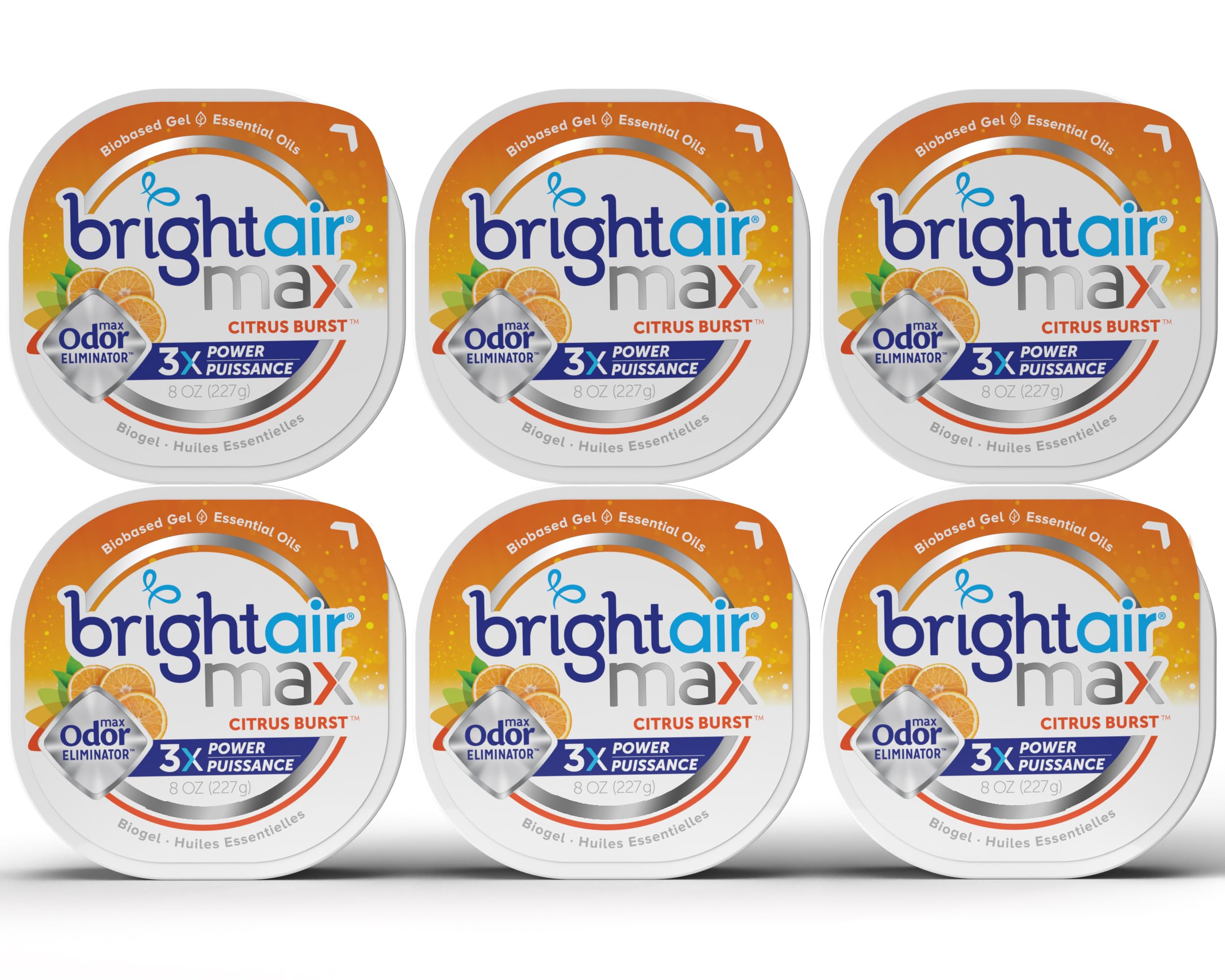 Bright Air Max Odor Eliminator Gel, Biobased Air Freshener, Cruelty Free, Citrus Burst Scent, 8 Oz Each, 6 Pack|Health & Beauty
