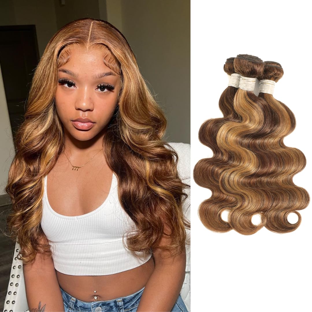 ALHER Body Wave Ombre Human Hair Bundles Honey Blonde Highlight Brown Colored Bundles 12A 100% Brazilian Virgin Remy Human Hair Soft Thick Wavy Weave|Health & Beauty