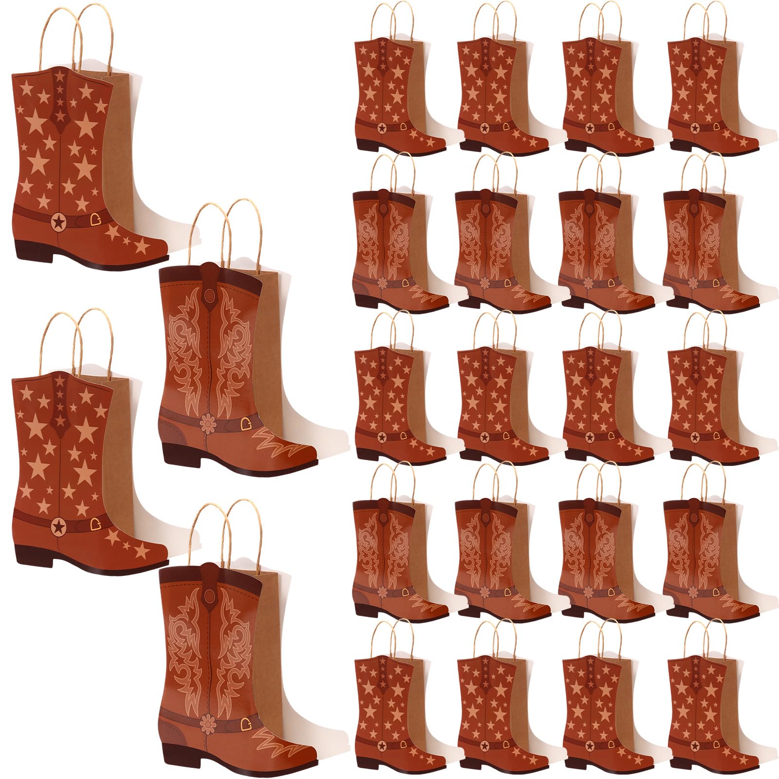 Mooliwe 24 Pcs Cowboy Cowgirl Boots Paper Bags Western Theme Party Favors Wild West Girls Kraft Bags Bachelorette Theme Last Rodeo Party Supplies|Health & Beauty