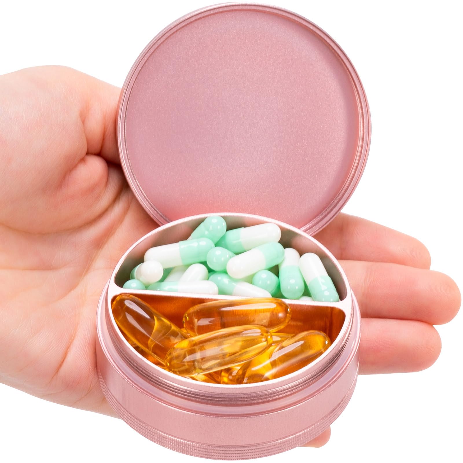 Metal Pill Case 2 Compartment - Waterproof Pill Box for Daily Travel, Pocket Purse Pill Container Holder Compact Medicine Organizer for Vitamins Fish|Health & Beauty