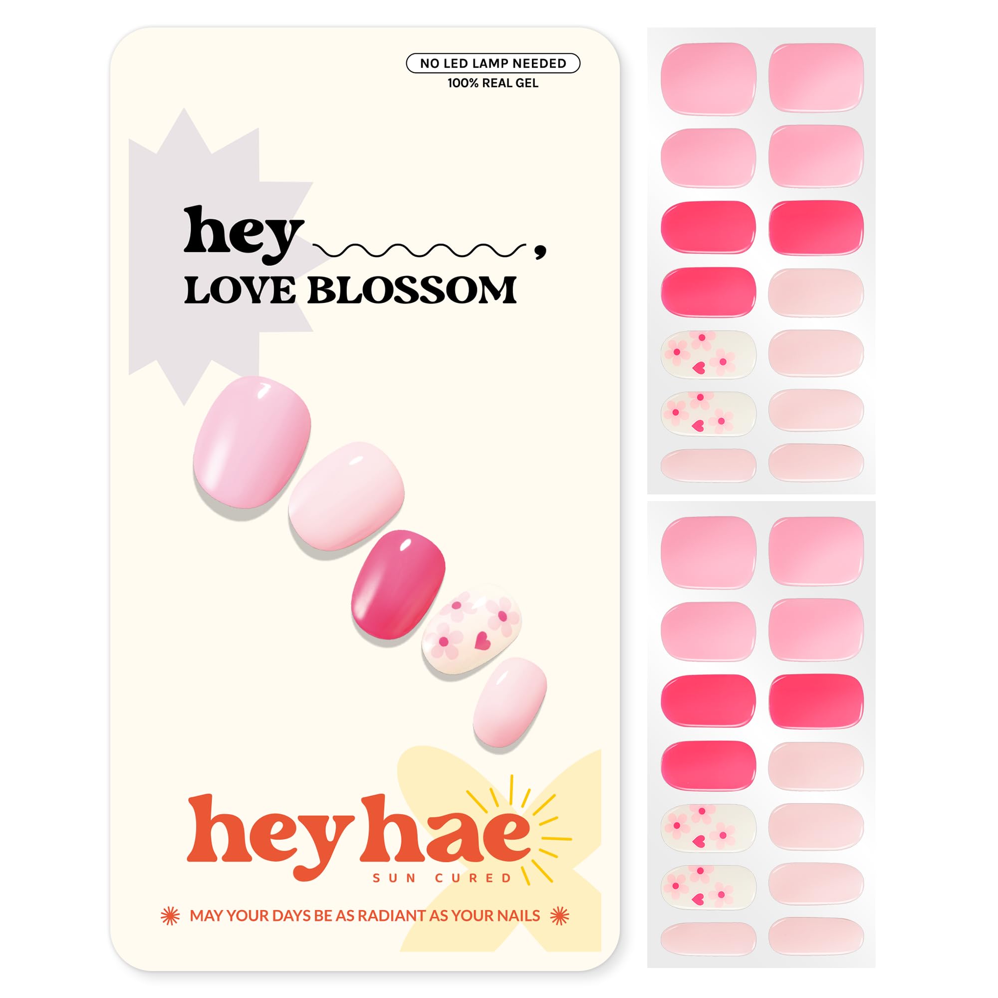 Heyhae Semi Cured Gel Nail Strips | No LED Lamp Needed | Pink, Valentines | Easy Apply & Remove, Salon Quality | Includes 28 Strips, 1 Prep Pads, Nail|Health & Beauty