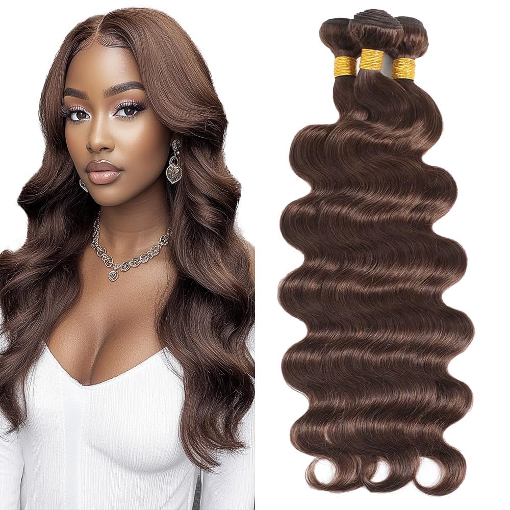 Dark Brown Bundles Human Hair Brazilian Body Wave Hair Extensions Sew In 9A Grade Virgin 100% Unprocessed Remy Human Hair Weave Extensions (Body 2#,|Health & Beauty