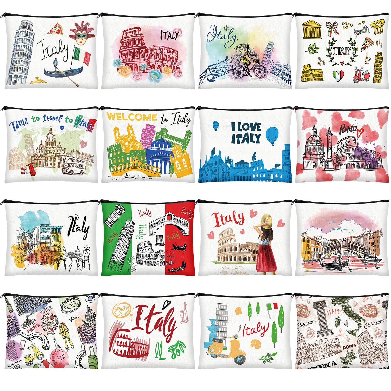 Bulyoou 16 Pcs Italy Cosmetic Bag Souvenir Gifts Makeup Bag Travel Vacation Zipper Pouch Purse for Women Birthday Trip Gifts Party Favors|Health & Beauty