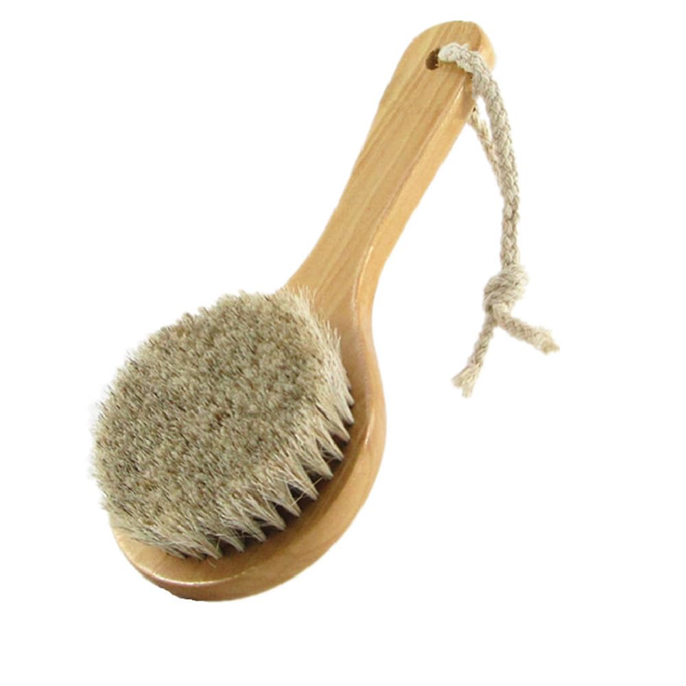 HiKin 7.87” Short Handle Dry Bath Body Brush Scrubber, Wood Handle Soft Horsehair Mane Natural Bristles Shower Brush, Good for Cellulite, Detox,|Health & Beauty