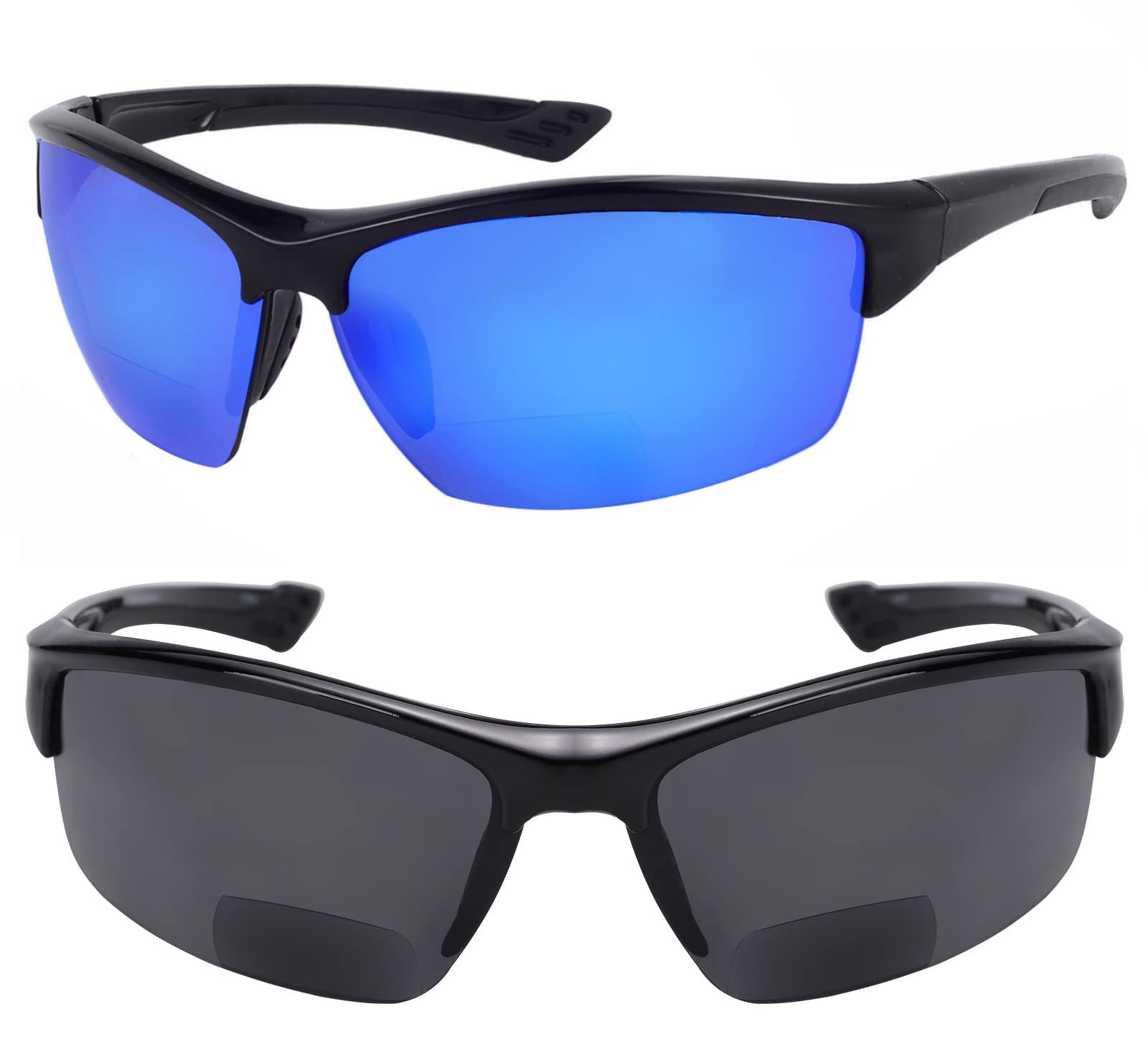 Mass Vision 2 Pair of Unisex Bifocal Reading Sunglasses - Sport Wrap Sun Readers, ANSI Z87.1 Certified|Health & Beauty