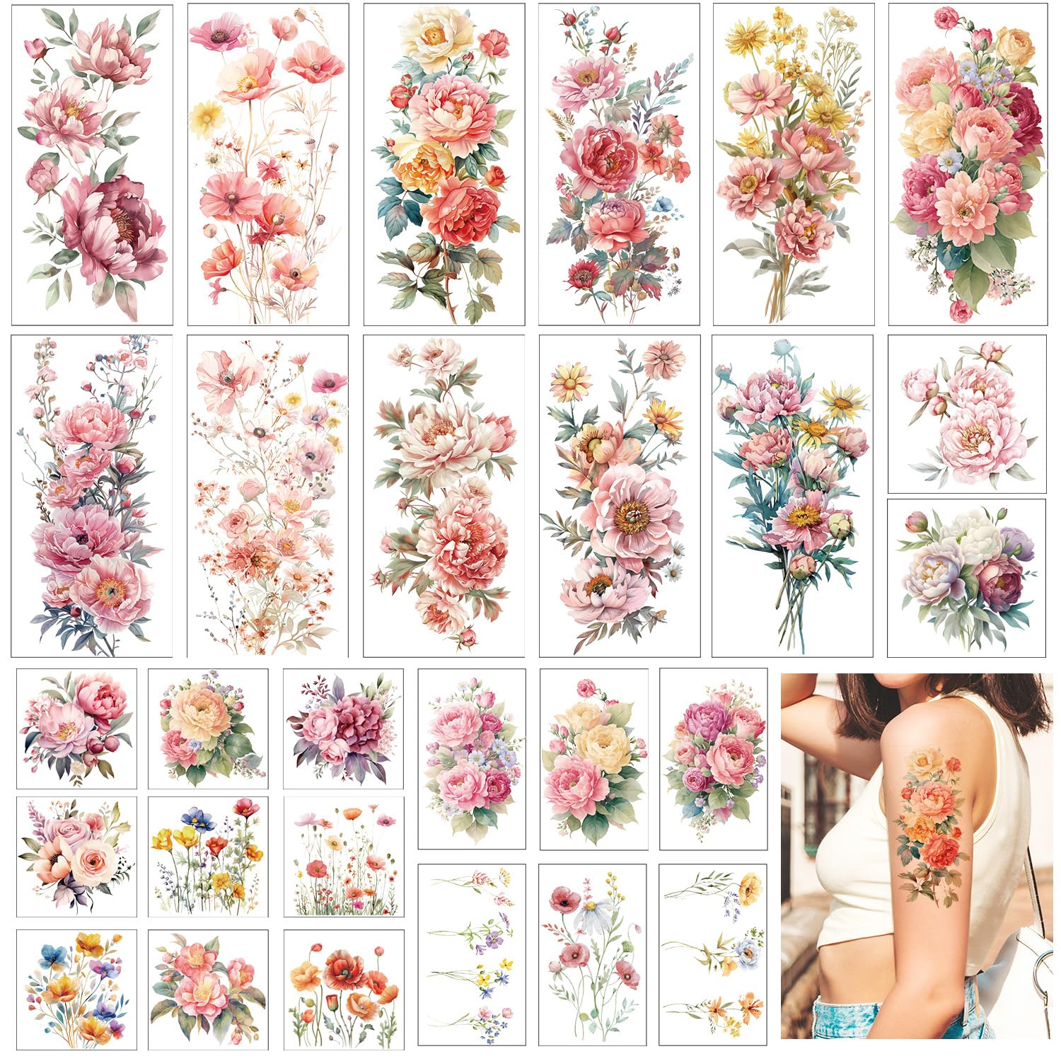 Gameza Flower Temporary Tattoos Girls - 28PCS Pretty Floral Tattoos Temporary Realistic 3D Wildflower Temporary Tattoo Stickers Watercolor Fake|Health & Beauty
