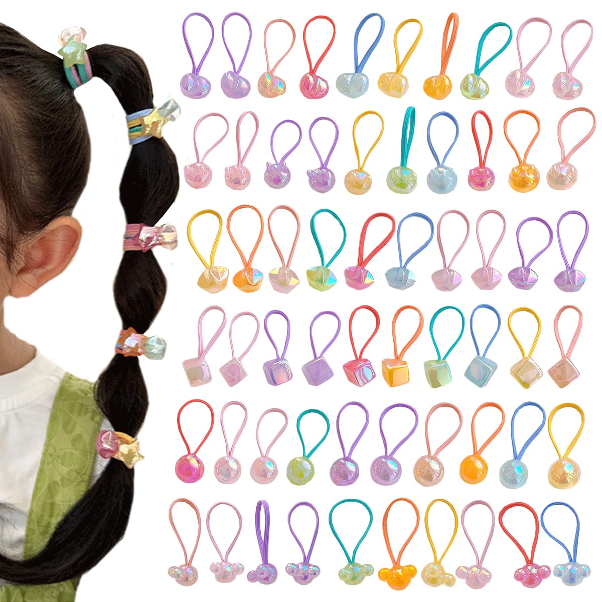 Petunny 40Pcs Cute Kids Hair Ties Cartoon Hair Bands Ponytail Holders Elastic Colored Ball Hair Ties for Little Girls Toddler Teens Children|Health & Beauty