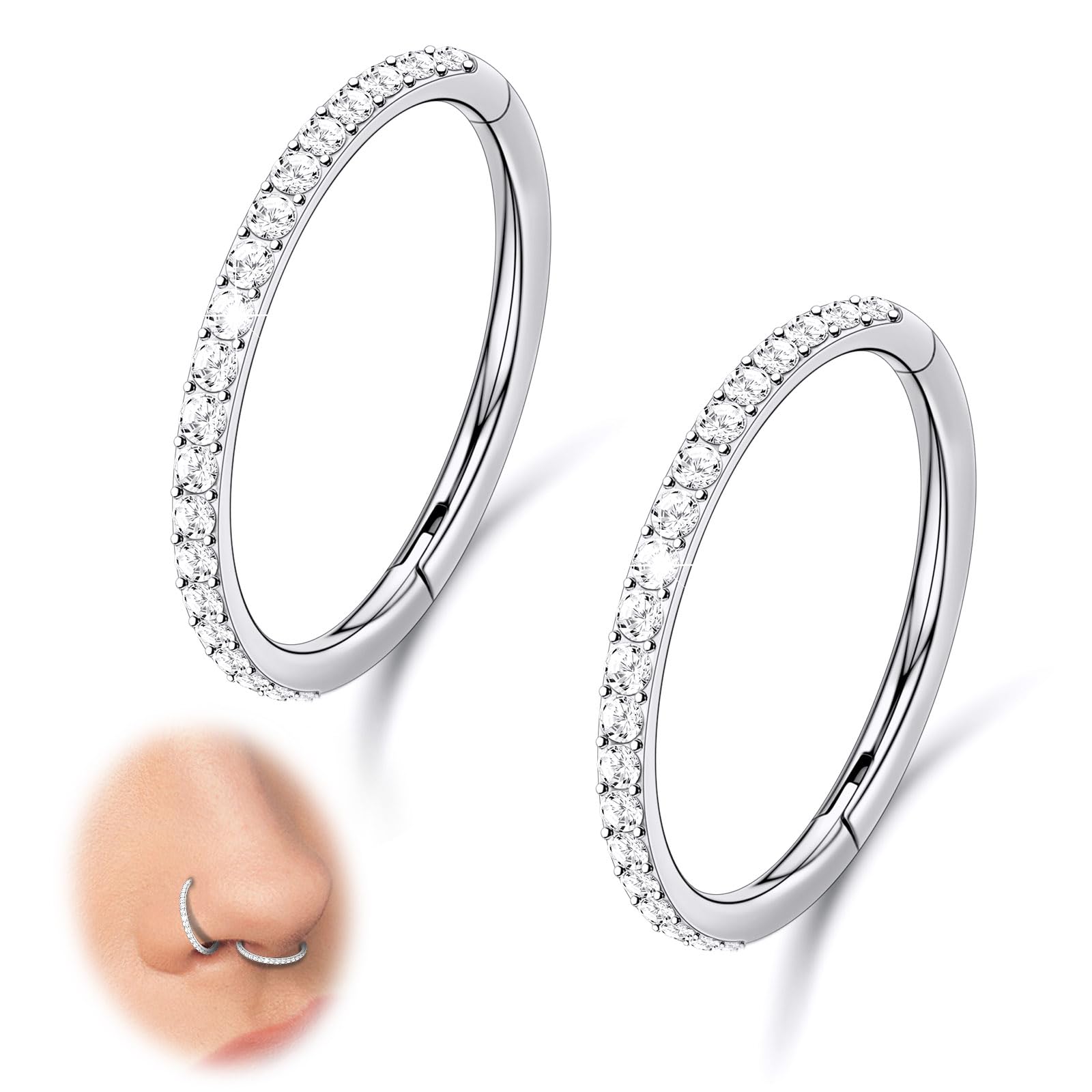 Beautidots 2PCS 20G 18G 16G Nose Ring Cartilage Hoop Earring Stainless Steel 4Colors Choose Hoop Earrings Hinged Summer Sparkle Septum Hoops Daith|Health & Beauty