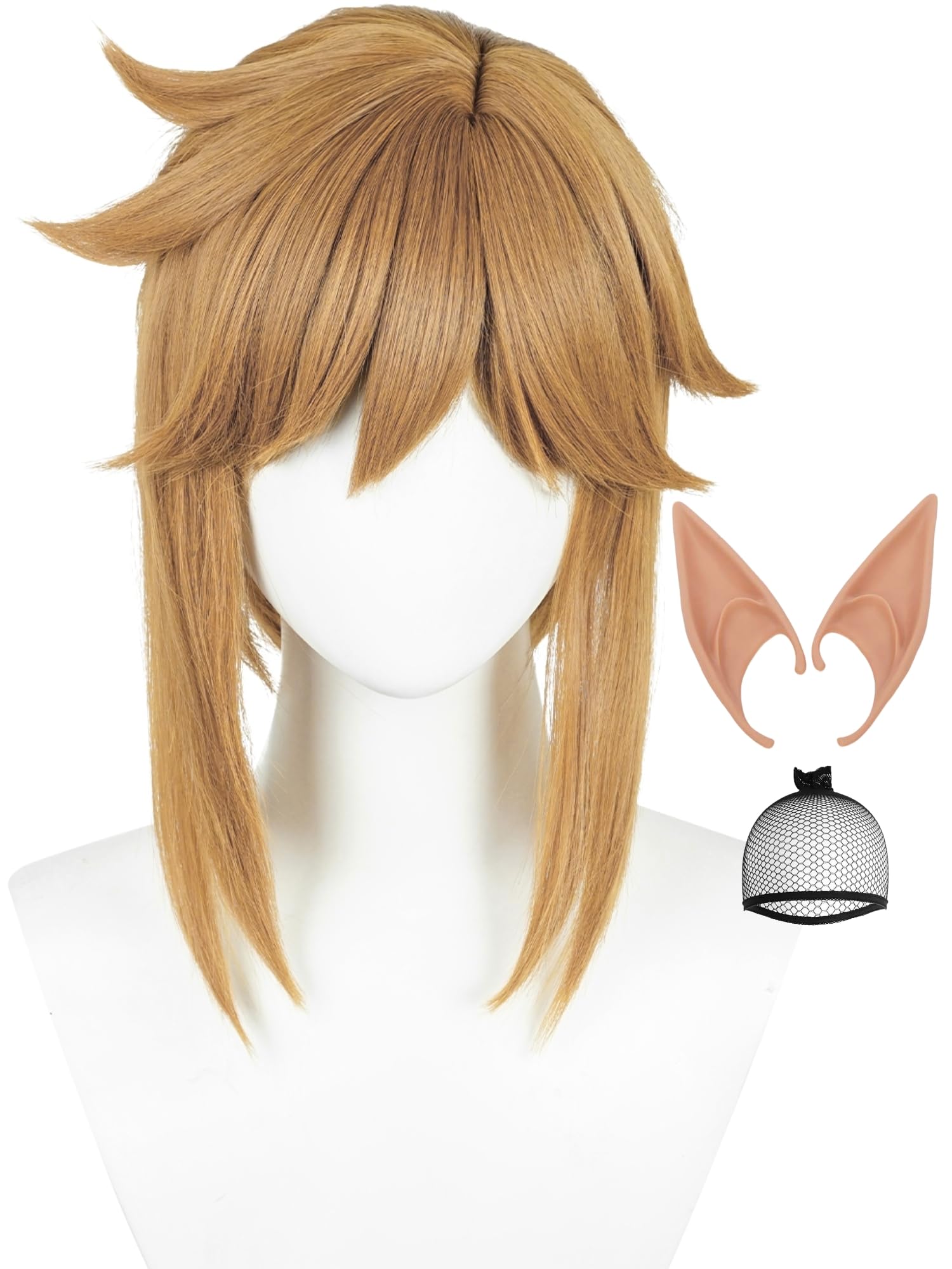 Half and Half Short Brown Anime Cosplay Wig with Bangs + Elf Ears Dark Brown Game Costume Wigs for Men Women Halloween Party Daily|Health & Beauty