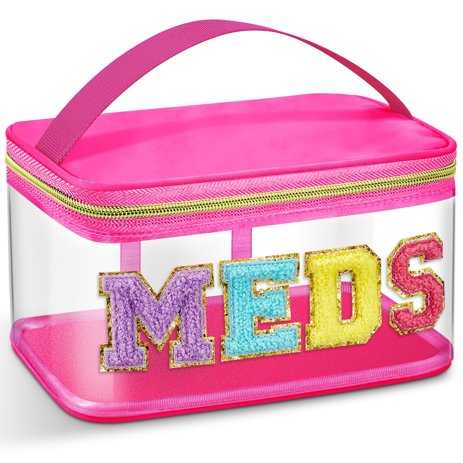 Geetery Chenille Letter Bag, Meds Cheer Travel Cases Cheerleader Gifts Cosmetic Bag Nylon Makeup Portable Preppy Patch with Zipper Toiletry Storage|Health & Beauty