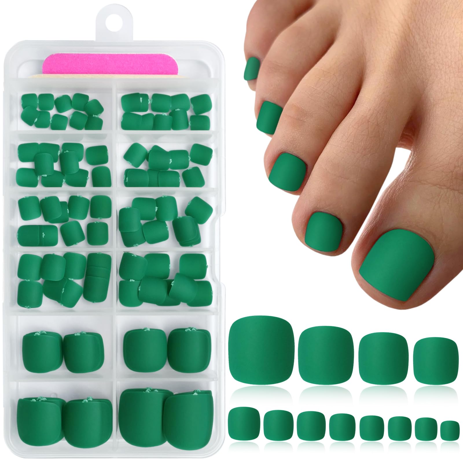 EternalClassic Press on Toenails, 120pcs Green Toe Nails Press ons Short Square Matte Acrylic Fake Toenails for Women|Health & Beauty