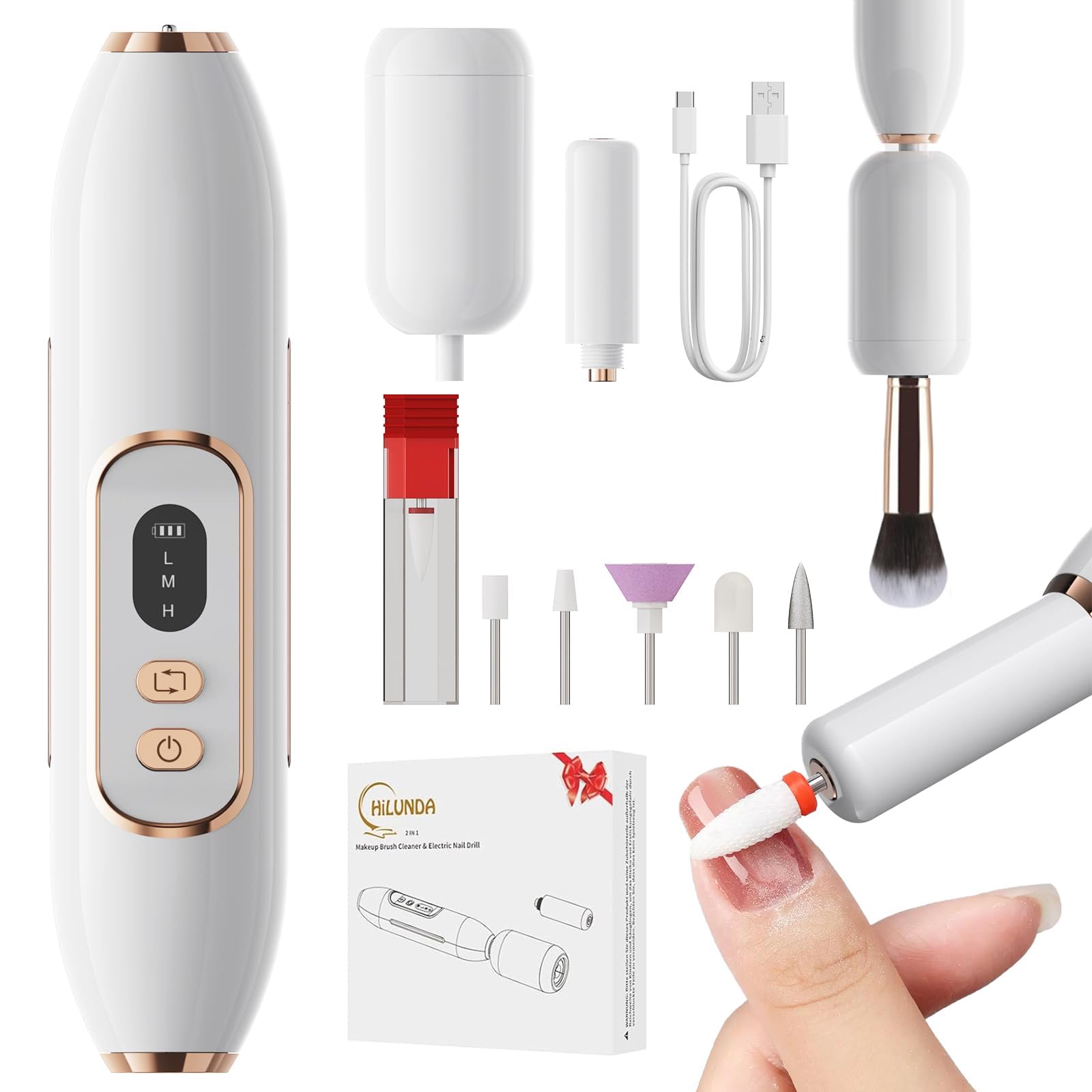 2-in-1 Nail Drill Electric Nail File with Makeup Brush Cleaner Machine (No Bowl), 1500 mAh Battery, Ultra Low Noise, Portable and Rechargeable for|Health & Beauty