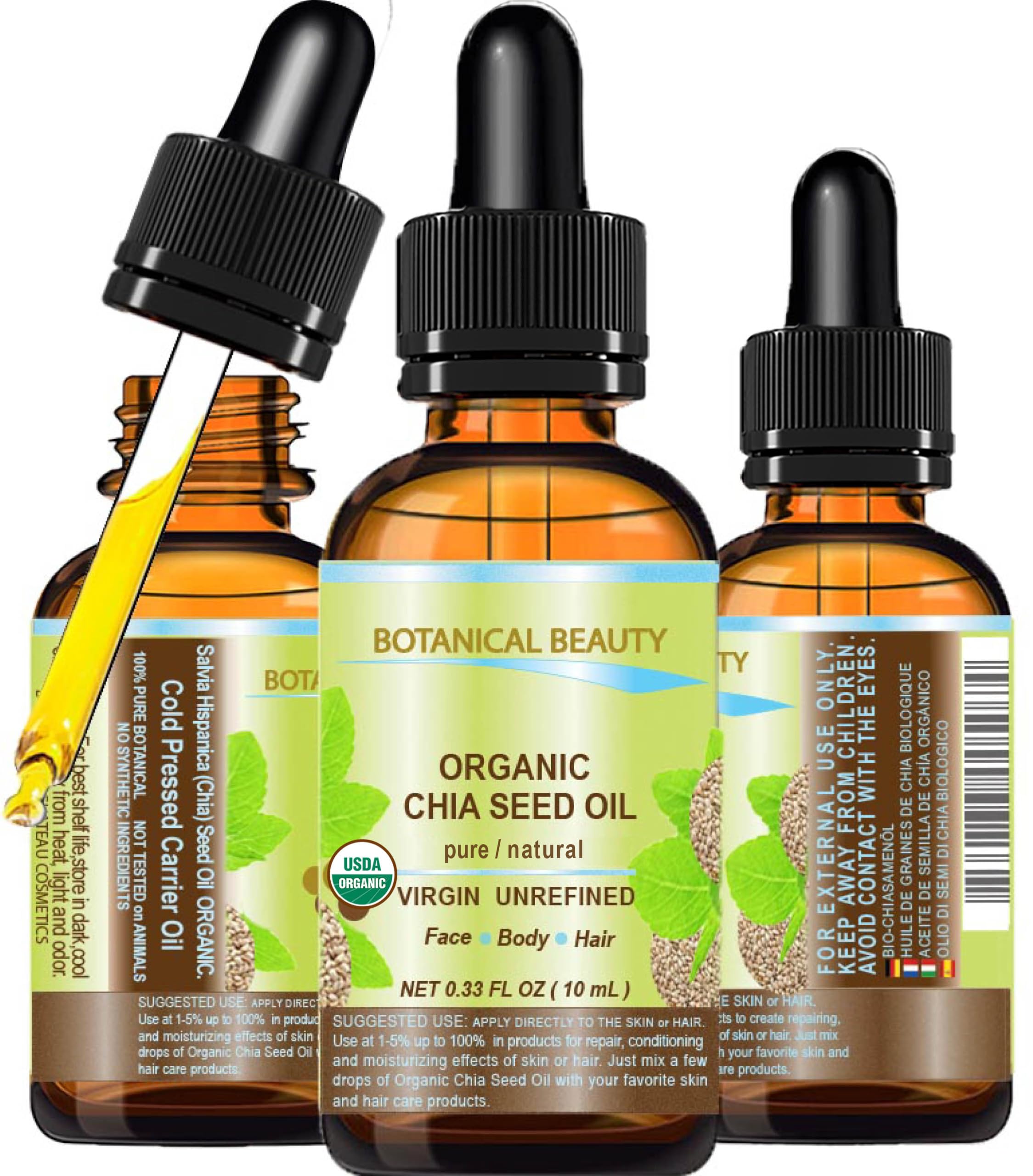 Botanical Beauty Organic CHIA SEED OIL 100% Pure Natural Virgin Unrefined Cold-Pressed Carrier Oil for Face, Skin, Body, Hair, Lip, Nails. Rich in|Health & Beauty