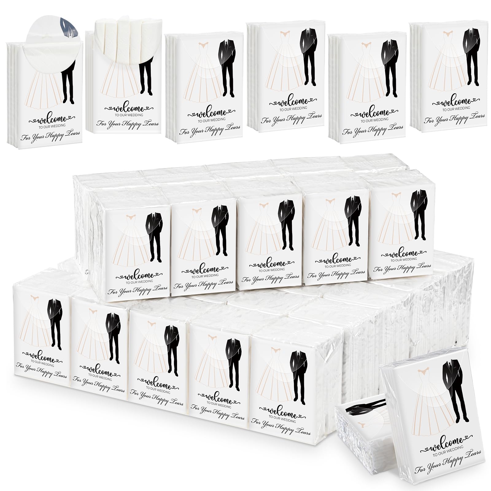 Engrowtic 100 Packs Wedding Facial Tissues Packs for Guests Mini Tissues Travel Size 4 Ply Happy Tears Favors Welcome to Our Wedding for Hotel|Health & Beauty